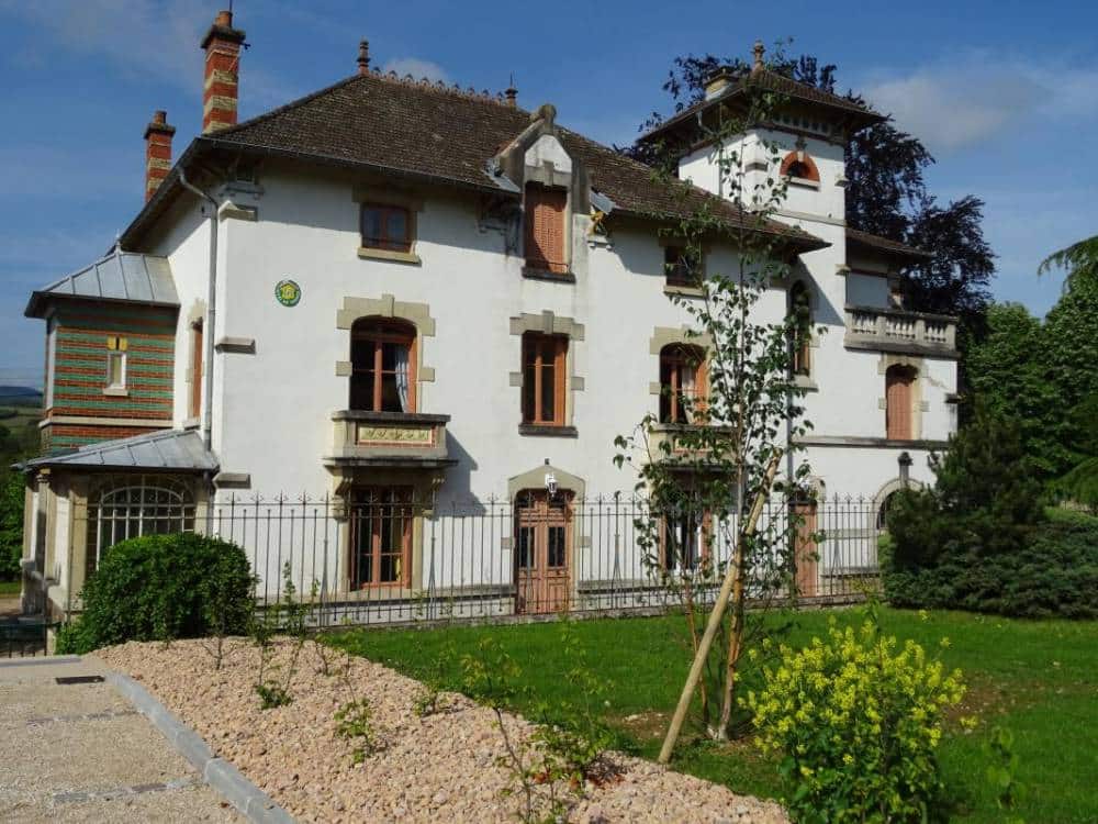 En bordure de la Voie Verte, au coeur du vignoble Mâconnais, vaste et confortable maison bourgeoise début XXème siècle, entièrement restaurée, entourée d'un granc espace vert, à proximité de la cave Les Vignerons des Terres Secrètes. Rez-de-chaussée : salle de séjour modulable, cuisine équipée collective, wc, salon. 1er étage : 5 ch. 20 lits 1 pers. 2ème étage : 4 ch. + 1 appart., salon. (12 lits + 5 sanitaires privatifs). Wifi. Repas possible par traiteur. Dégustation cave Vignerons des Terres.