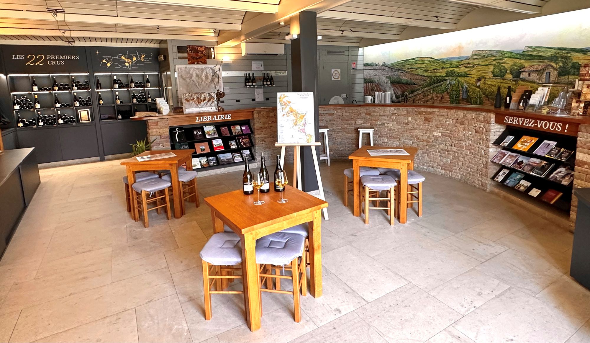 L'Atrium est la cave de l'Union des Producteurs de Pouilly-Fuissé: au cœur du Grand Site de France de Solutré-Pouilly-Vergisson, ce lieu de dégustation, de découverte et d'achat est une porte ouverte sur l'Appellation ! Avec les vins de plus de 90 domaines, Florence et Maud vous accueillent et vous orientent vers les différents terroirs de l'appellation, nos 22 Premiers Crus (depuis 2020 !), vous proposent une dégustation commentée (en français et en anglais) d'une sélection de 6 Pouilly-Fuissé représentatifs de nos terroirs, dont un 1er Cru, ainsi que sur des aspects plus pratiques tels que restauration, hébergement, tourisme,…